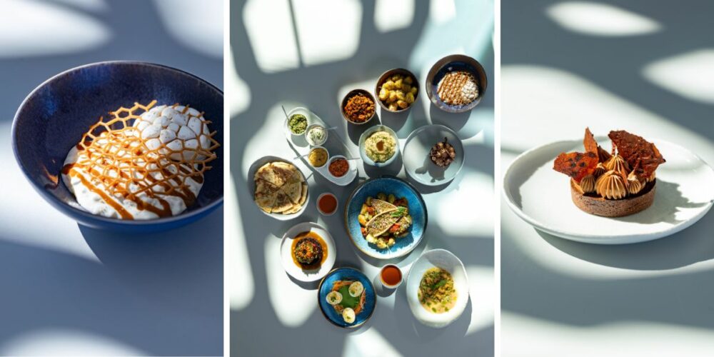 « Bouillant, pourquoi ? Parce qu’à Marseille, tout le monde est chaud bouillant », sourit Alexandre Mazzia. Mais au-delà du jeu de mots, l’idée est de proposer une cuisine lisible, de partage, construite autour du territoire et des artisans locaux. « Une gastronomie au service du grand public, où l’on retrouve mes marqueurs – torréfaction, piments, twists subtils – mais toujours avec simplicité et élégance », ajoute-t-il. Dans la continuité du Michel AM, dédié à une street food inventive, Bouillant se présente comme son « grand frère », plus posé, mais toujours audacieux. Un lieu qui conjugue excellence et convivialité, dans un cadre lumineux pensé par le designer Jérôme Dumetz, où béton brut, bois clair et inox brossé dialoguent avec les lignes épurées du musée. Depuis la salle ouverte sur la cuisine, les convives profitent d’une vue imprenable sur la Méditerranée et la cathédrale de la Major, un panorama à couper le souffle qui prolonge l’expérience sensorielle jusque dans le regard.